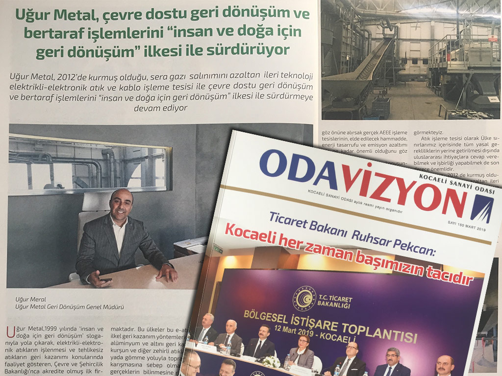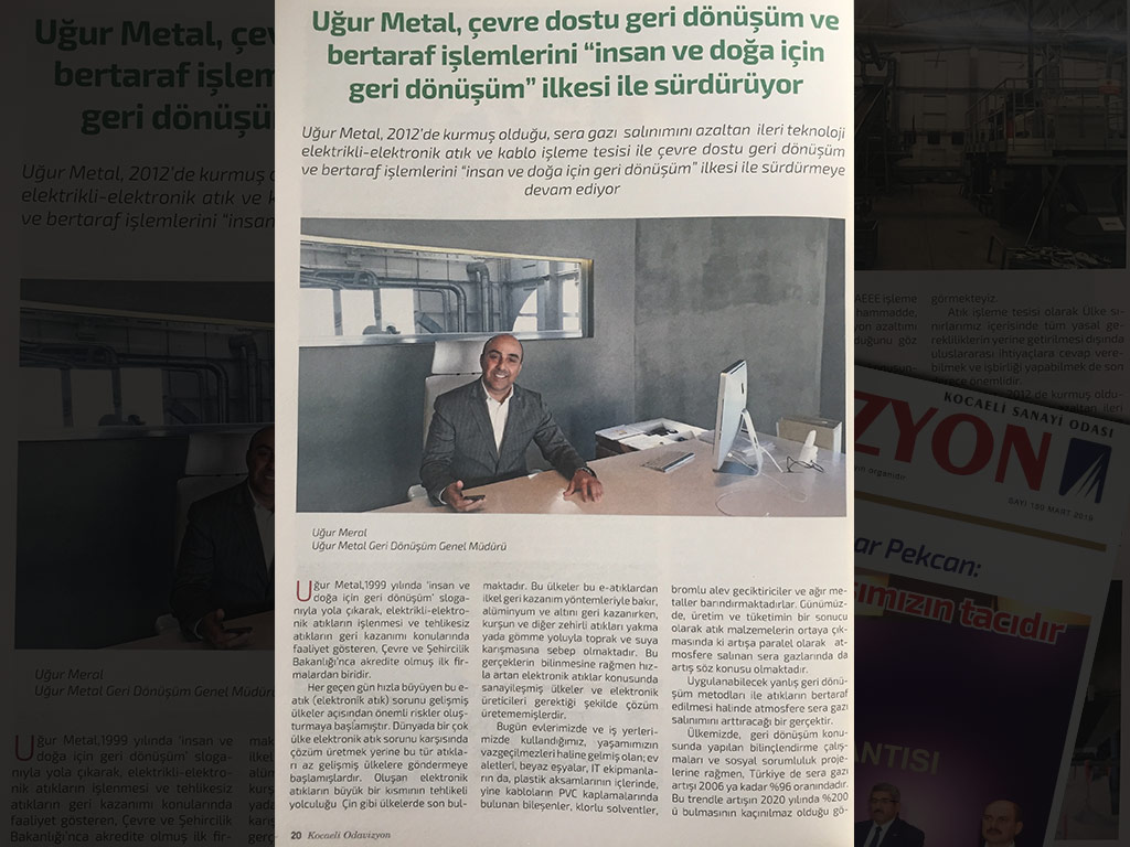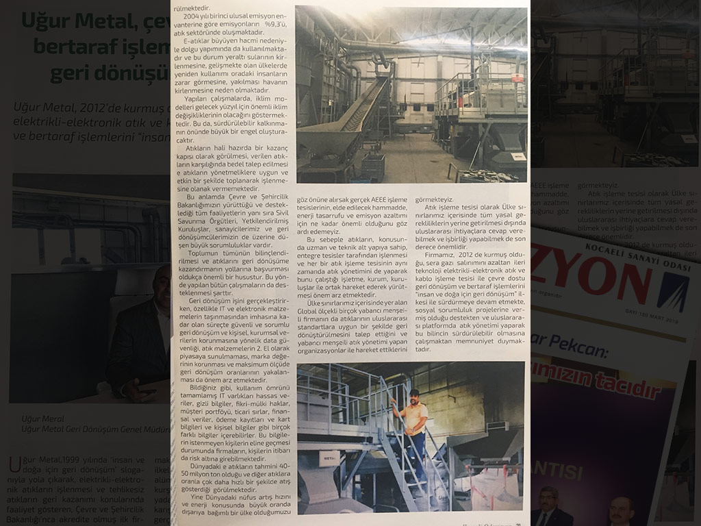 Uğur Metal 1999 yılında “insan ve doğa için geri dönüşüm” sloganıyla yola çıkarak, elektrikli-elektronik atıkların işlenmesi ve tehlikesiz atıkların geri kazanımı konularında faaliyet gösteren, Çevre ve Şehircilik Bakanlığınca akredite olmuş ilk firmalardan biridir.